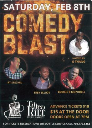 Don’t miss Comedy Blast Palm Springs tomorrow night Tilted Kilt Palm Desert! Hosted by Actor/Comedian Gary “G Thang” Johnson. One of the funniest comedians in the industry today! Doors open at 7:00 P.M PST. Sponsored by Cardiff Limousine & Transportation